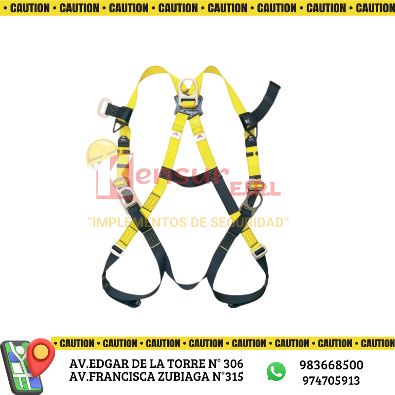 Formado por correas de piernas y hombros que sujetan el cuerpo para contrarrestar la fuerza de impacto; y con capacidad de soportar hasta 140 kg por trabajador. Cuenta con manual de instrucciones.