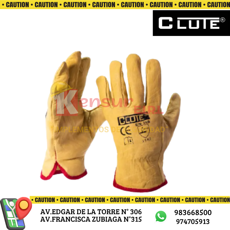 El guante de cuero badana de la marca CLUTE, es una línea de guantes recomendados para tareas generales de riesgos mecánicos medios-bajos. Conocido como modelo ingeniero, conductor o maniobrista. Ofrece un óptimo rendimiento de acuerdo a su categoría. Se recomienda que estos guantes sean inspeccionados antes de su uso y después de la jornada laboral para asegurar que no haya ningún daño presente.